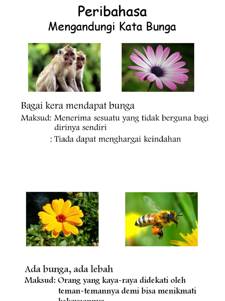 Himpunan Peribahasa Yang Terdapat Dalam Buku Teks Kssr Bahasa Melayu Tahun 4 5 Dan 6 from wwwsistemguruonlinemy Bagai kera mendapat bungaseperti kera. Seperti kera mendapat bunga 2. Bahasaku indah at 1020 pg.